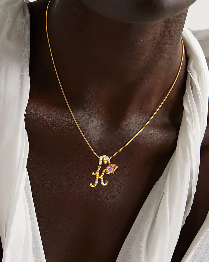The bail and initial are adorned with precision-set zircons. Creates a fine jewelry feel with a playful, modern twist.