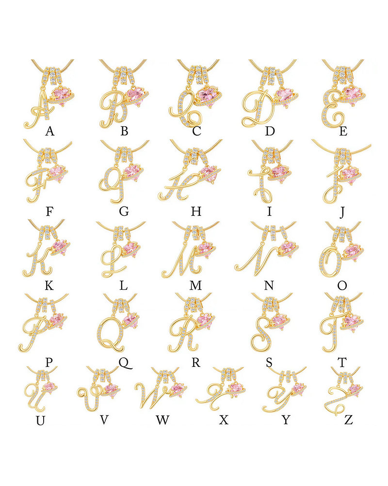 Curvvvy® Personalized Initial Necklace with Pink Heart Planet Pendant